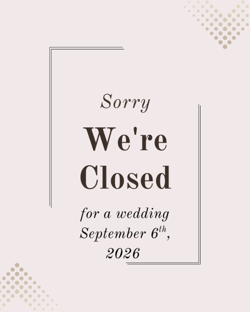 Sorry we are closed to the public for a wedding. Back to normal hours Monday September 7th, 2026.